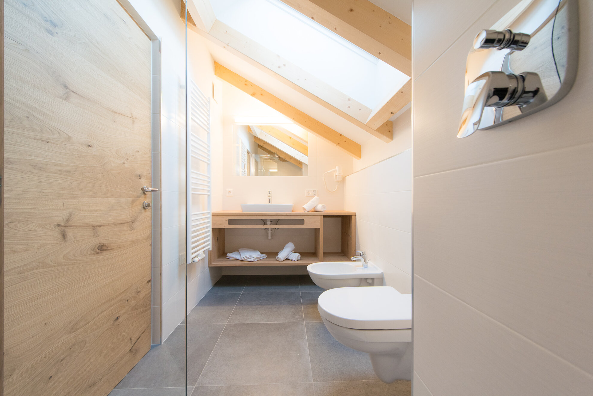 - Badezimmer mit Regendusche, WC, Bidet und Haarföhn